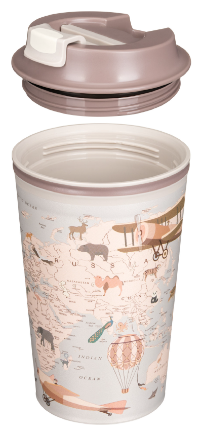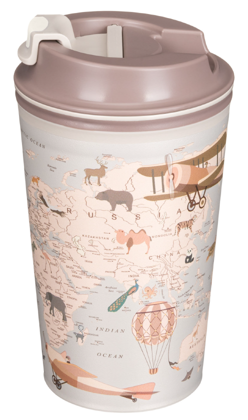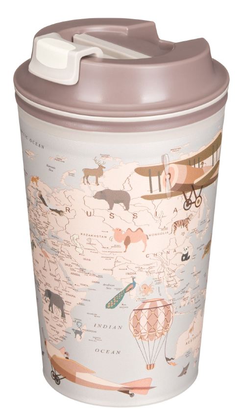 Термостакан Phibo Карта, 350 мл состоит из двух пластиковых колб: внутренней и внешней. Воздушная прослойка между колбами обеспечивает сохранение температуры напитка, а также не позволяет внешней стенке стакана сильно нагреваться. Клапан надолго сохраняет напиток горячим и не дает ему расплескаться по пути. Предназначен для многоразового использования. В термостакане удобно брать горячие и холодные напитки с собой. Благодаря оптимальным габаритам, термостаканы идеально помещаются в автомобильный подстаканник и в боковой карман рюкзака. Изготавливаются из 100% перерабатываемого прочного безопасного полипропилена. Декор нанесен с помощью технологии IML, поэтому изображение не сотрется и не отклеится.
