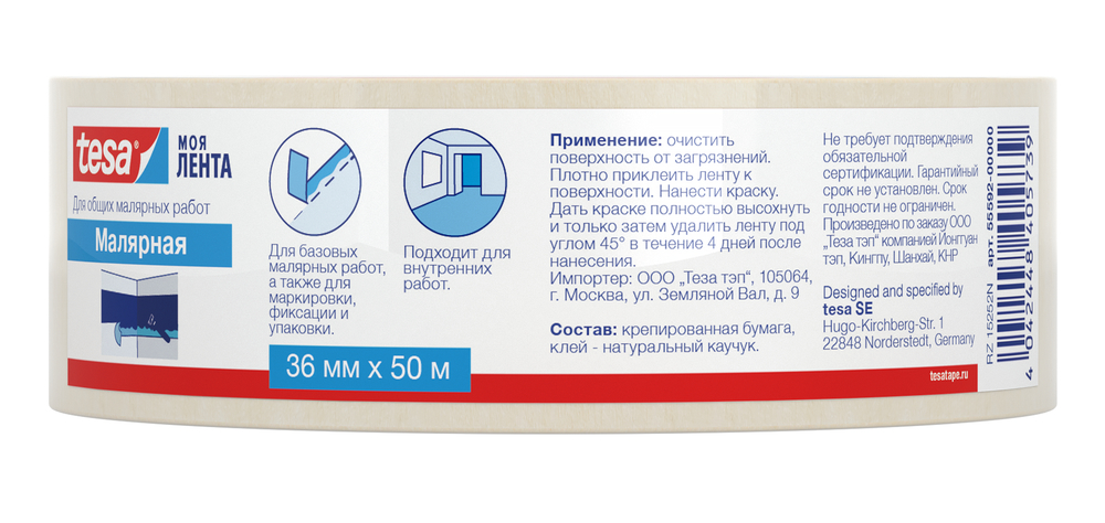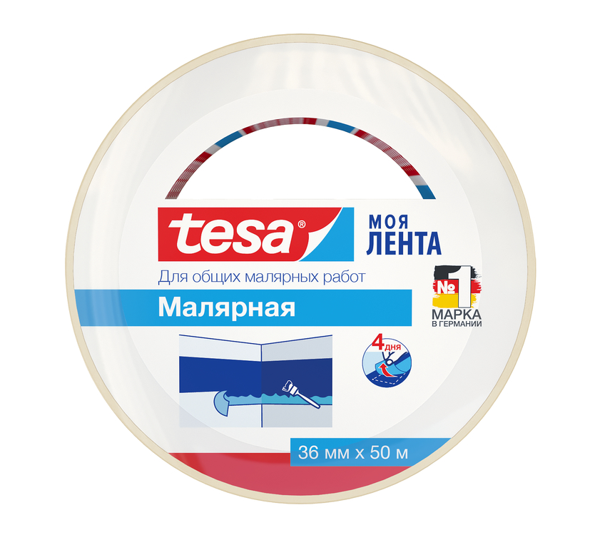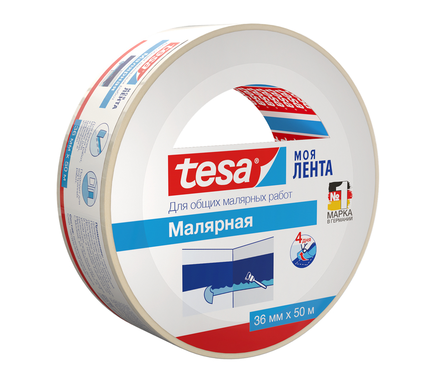Малярная лента для внутренних покрасочных работ. Предназначена для выполнения множества видов работ по покраске. Бесследно удаляется в течение 4 дней после использования.