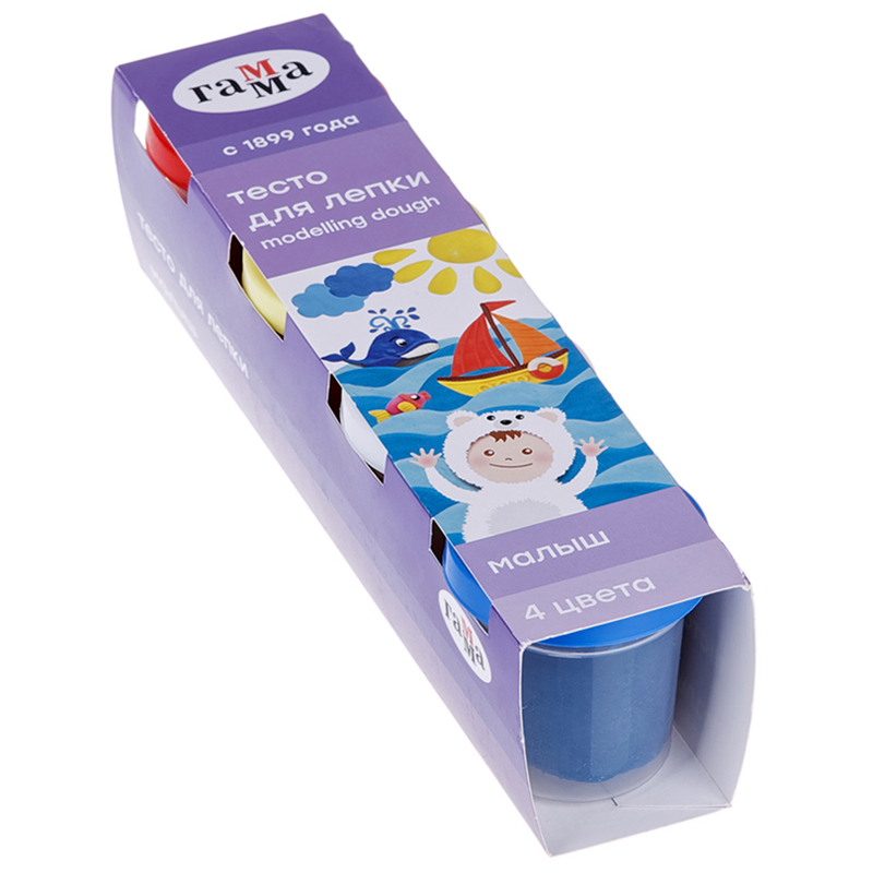 Идеально подходит для первых творческих работ: развивает мелкую моторику, усидчивость, координацию движений, пространственное и творческое мышление. Масса безопасна и нетоксична, не пачкает руки. В набор входит: 4 баночки теста для лепки основных цветов: красный, синий, жёлтый, белый. У теста мягкая текстура – оно легко разминается и хорошо держит форму. Цвета можно смешивать между собой, чтобы получить новые оттенки. Тесто застывает за 24–72 часа, а готовой поделкой можно играть