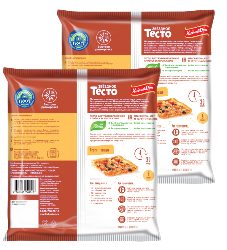 Тесто слоеное Хлебный дом Звездное бездрожжевое замороженное, 500г x 2 шт