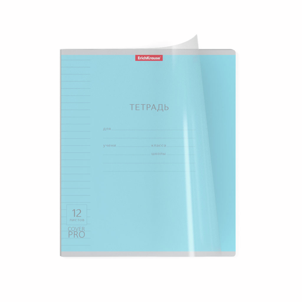 Тетрадь Erich Krause с пластиковой обложкой. В блоке 12 листов в линейку. Бумага офсетная плотностью 60 г/м2. Цвет линовки — синий. Скругленные уголки обложки и блока.