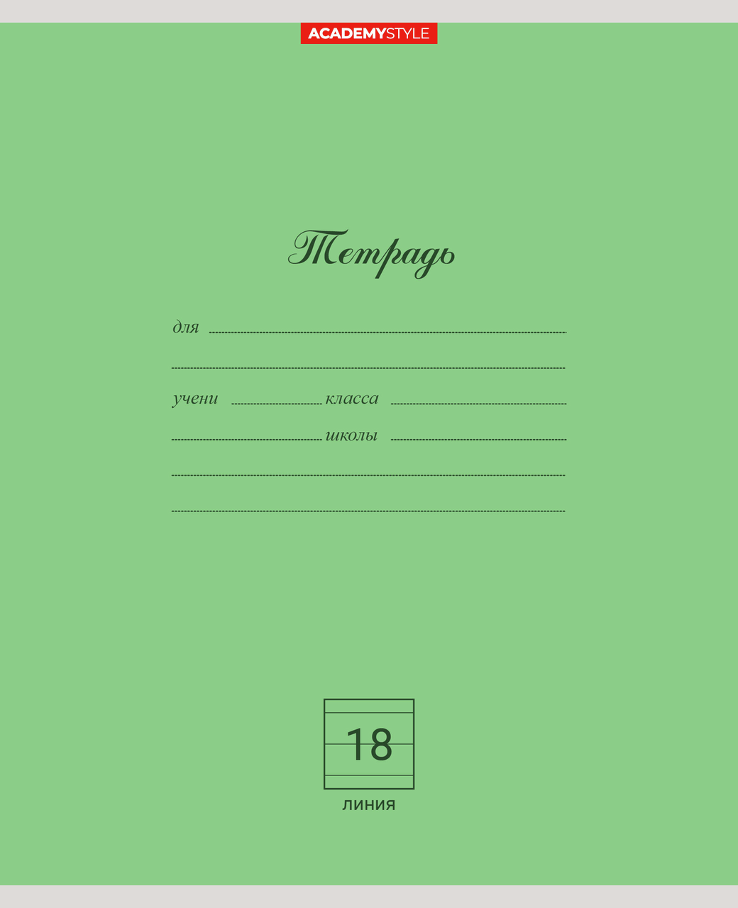 Тетрадь Academy Style линейка А5 18 листов однотонные цвета(синий, голубой, зеленый, светло-зеленый, сиреневый), 10 штук в упаковке.