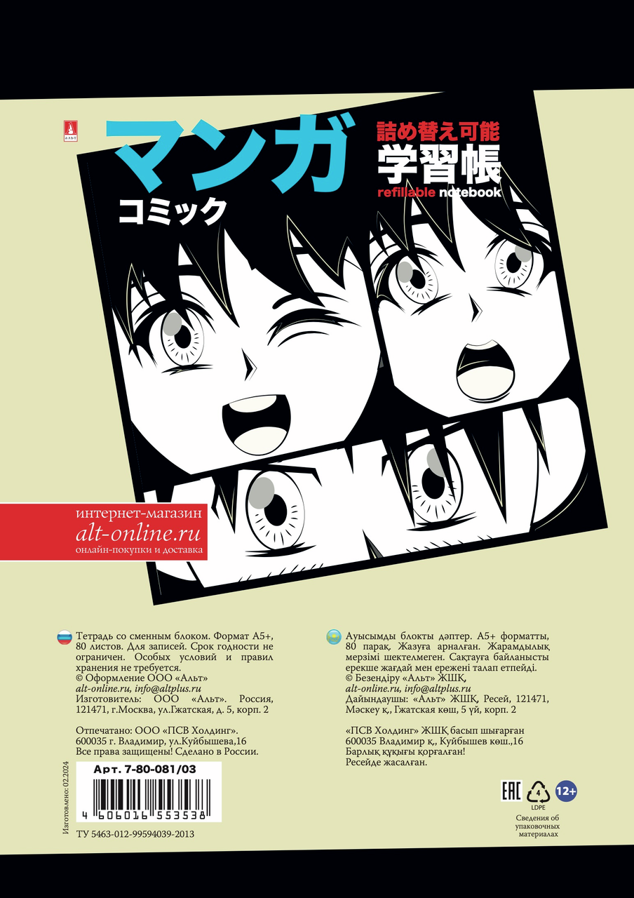 Тетрадь Альт Manga anime-2 на кольцах со сменным блоком А5, 80 листов