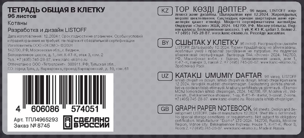 Тетрадь Listoff от компании Эксмо представлена в удобном формате А4 и идеально подходит для ведения конспектов или записи идей. Яркие молодежные дизайны придутся по душе всем, кто хочет добавить в свою жизнь яркий аксессуар для ведения записей. Внутренний блок: 96 листов плотностью 60гр/м2 в клетку.