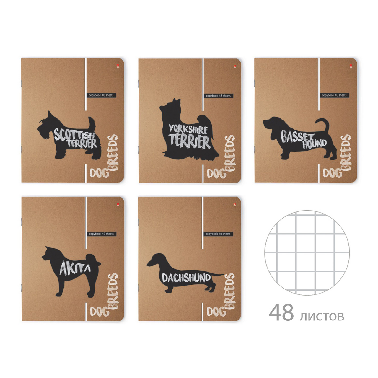 Крафтовые картонные обложки тетрадок украшены изображениями четвероногих друзей от крохи йорка до крупной мускулистой акита-ину. Общие тетради можно использовать не только для школьных занятий, в такой тематической тетрадке удобно вести дневник наблюдений за четвероногим питомцем, отмечать особенности его поведения, вклеивать фото или писать конспекты занятий по дрессировке. Обложка - крафт-картон плотностью 225 г/кв.м, блок - белая офсетная бумага плотностью 70 г/кв.м. Линовка блока в клетку с полями позволяет вести записи аккуратно и четко. Титульный лист отмечен стилизованным следом собачьей лапы. Скругленные углы предохраняют от появления заломов. Надежное скрепление блока с обложкой обеспечивают 2 металлические скрепки
