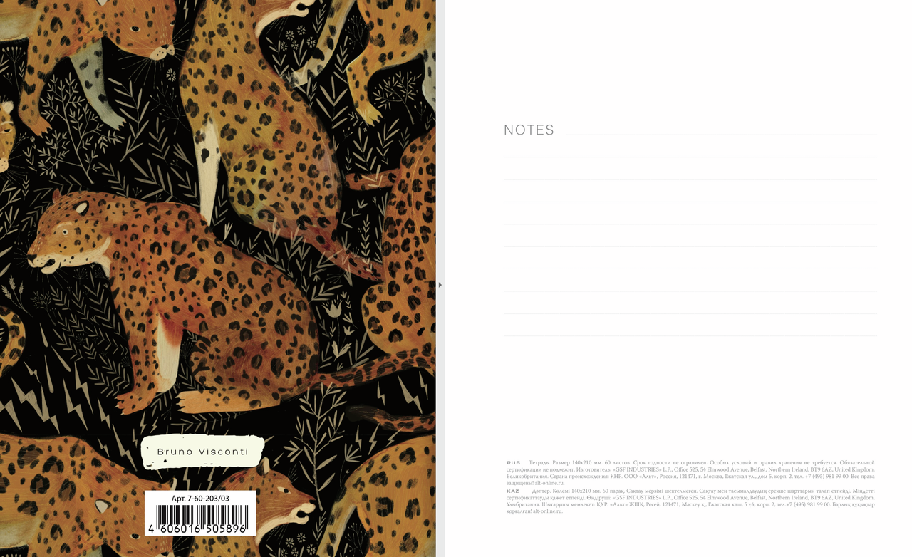 Тетрадь общая Bruno Visconti Леопарды в клетку А5, 60 листов