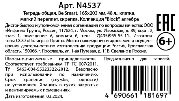 Тетрадь предметная Be Smart Block отличное решение для учеников средних и старших классов, а также студентов.