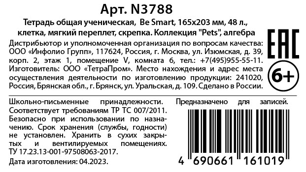 Тетрадь Be Smart Pets предметная алгебра, 48л - обложка из мягкого, но прочного картона с микротекстурированием и печатью цветного принта с внутренней стороны имеет приятную ламинацию, которая делает изделие прочнее и долговечнее. А скругленные уголки позволят мягкой обложке сохранить первозданный вид и не порвать подкладку рюкзака или сумки.Внутренний блок в клетку со скругленными уголками на 48 листов (96 страниц) из высококачественной белой бумаги плотностью 60г/м2 имеет такой нужный справочный материал по предмету.QR код на тетради дает доступ к справочному материалу онлайн