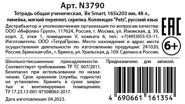Тетрадь Be Smart Pets предметная русский язык, 48л - обложка из мягкого, но прочного картона с микротекстурированием и печатью цветного принта с внутренней стороны имеет приятную ламинацию, которая делает изделие прочнее и долговечнее. А скругленные уголки позволят мягкой обложке сохранить первозданный вид и не порвать подкладку рюкзака или сумки.Внутренний блок в клетку со скругленными уголками на 48 листов (96 страниц) из высококачественной белой бумаги плотностью 60г/м2 имеет такой нужный справочный материал по предмету.QR код на тетради дает доступ к справочному материалу онлайн