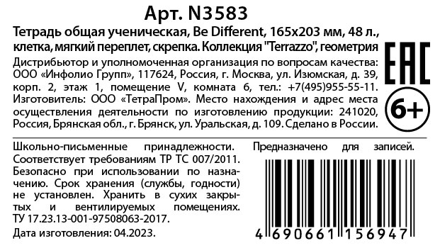 Тетрадь Be Smart Terrazzo предметная геометрия, 48л - обложки из мягкого, но прочного картона плотностью 230г/м2 с микротекстурированием и печатью цветного принта с внутренней стороны имеют приятную ламинацию, которая делает изделия прочнее и долговечнее. А скругленные уголки позволят мягким обложкам дольше сохранять первозданный вид. Каждый внутренний блок в клетку или линейку со стандартными красными полями и кругленными уголками на 48 листов (96 страниц) из высококачественной бумаги белизной 100% и плотностью 60 г/м2 имеет нужный справочный материал по предмету. Плюс, на обложке вы найдете QR-код, по которому справочный материал откроется и онлайн.