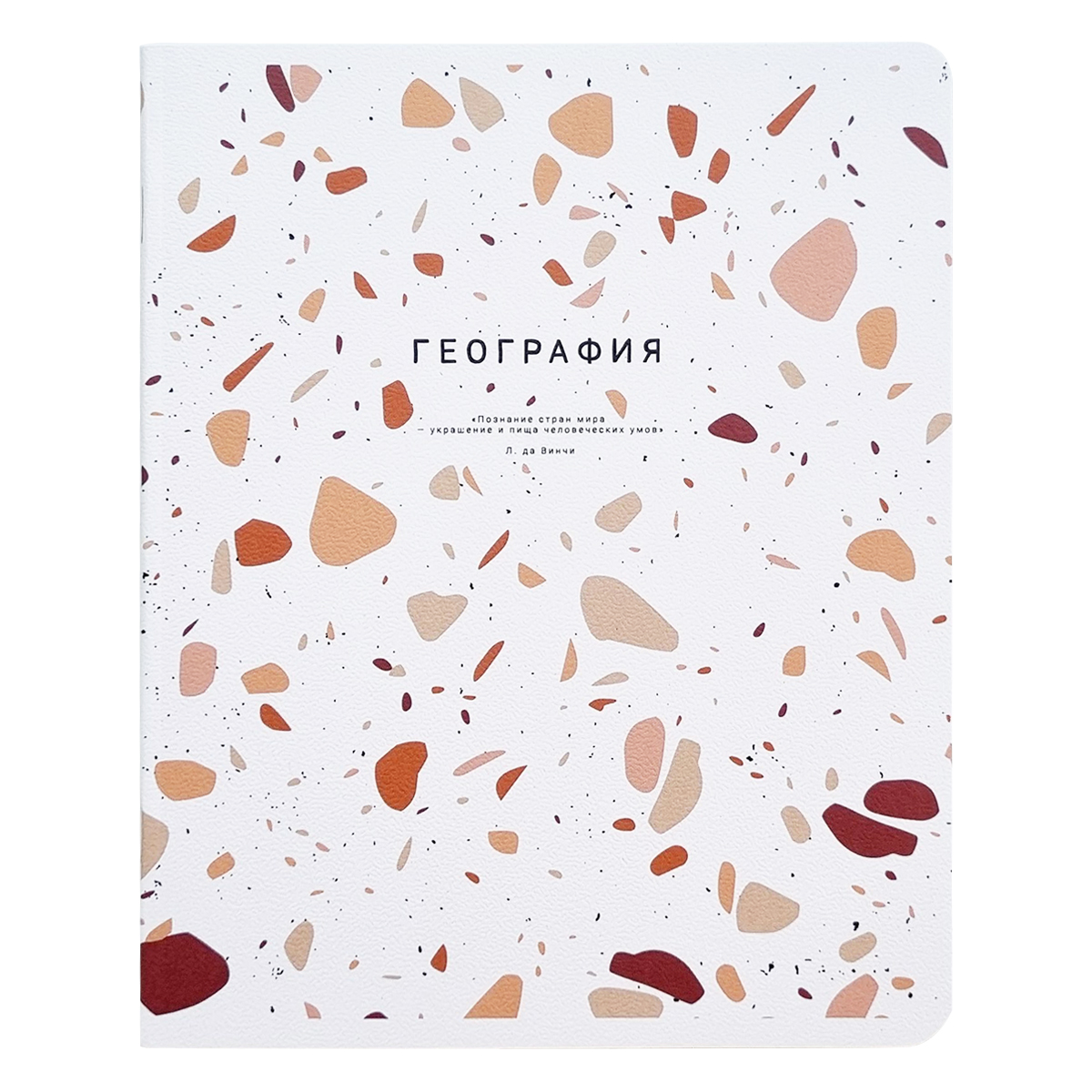 Тетрадь Be Smart Terrazzo предметная география, 48л - обложки из мягкого, но прочного картона плотностью 230г/м2 с микротекстурированием и печатью цветного принта с внутренней стороны имеют приятную ламинацию, которая делает изделия прочнее и долговечнее. А скругленные уголки позволят мягким обложкам дольше сохранять первозданный вид. Каждый внутренний блок в клетку или линейку со стандартными красными полями и кругленными уголками на 48 листов (96 страниц) из высококачественной бумаги белизной 100% и плотностью 60 г/м2 имеет нужный справочный материал по предмету. Плюс, на обложке вы найдете QR-код, по которому справочный материал откроется и онлайн.