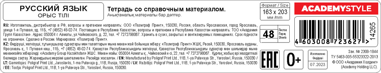 Тетрадь предметная Academy Style Аниме Русский язык А5 со справочным материалом, 48 листов