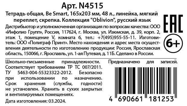 Обложка: картон, печать 4+4, микротекстурирование, ламинация. Скрепка. Внутренний блок: справочный материал, высококачественная бумага, клетка. Углы тетради скруглены. QR код на тетради дает доступ к справочному материалу онлайн.