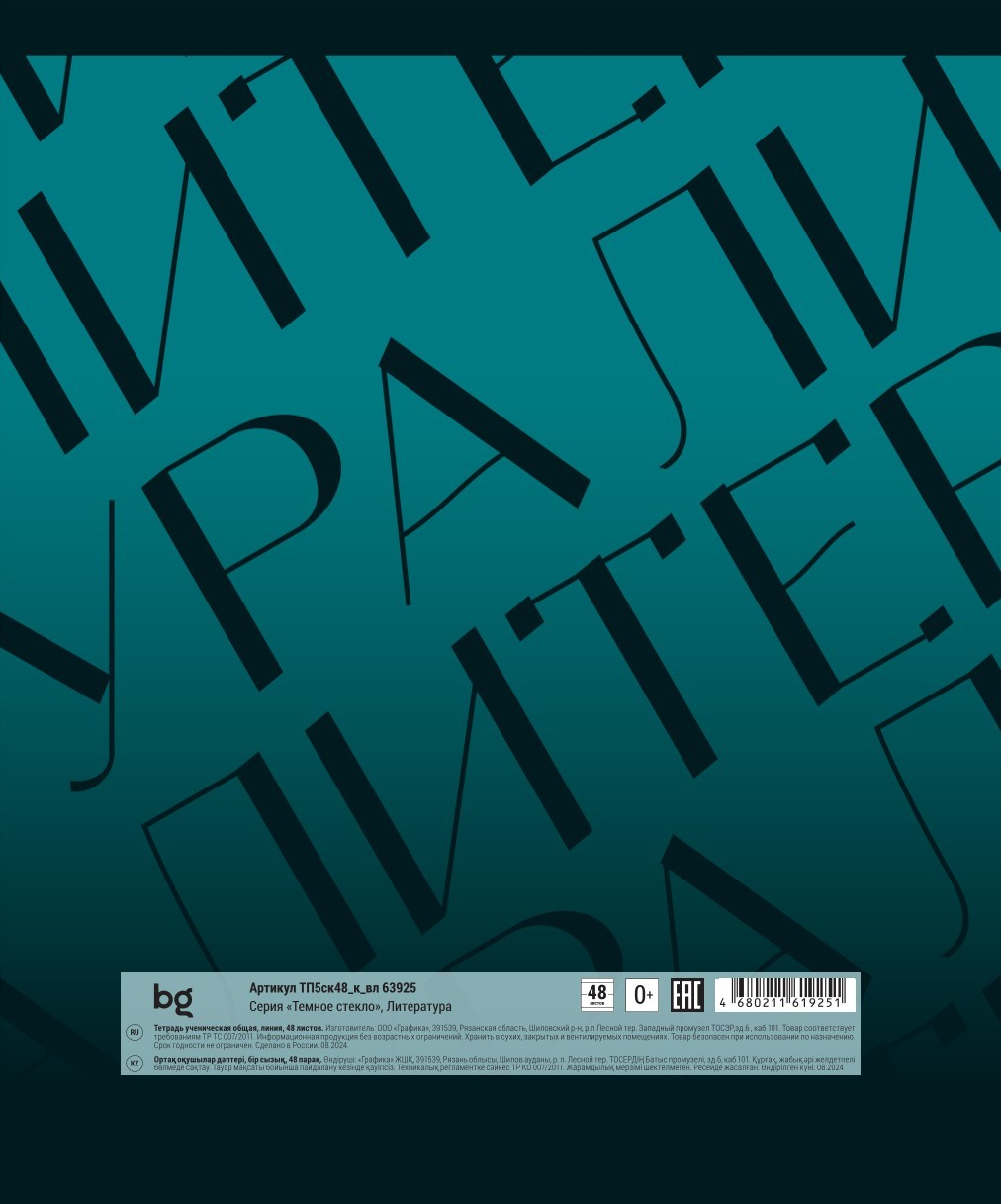 Тетрадь предметная BG Темное стекло Литература, 48л