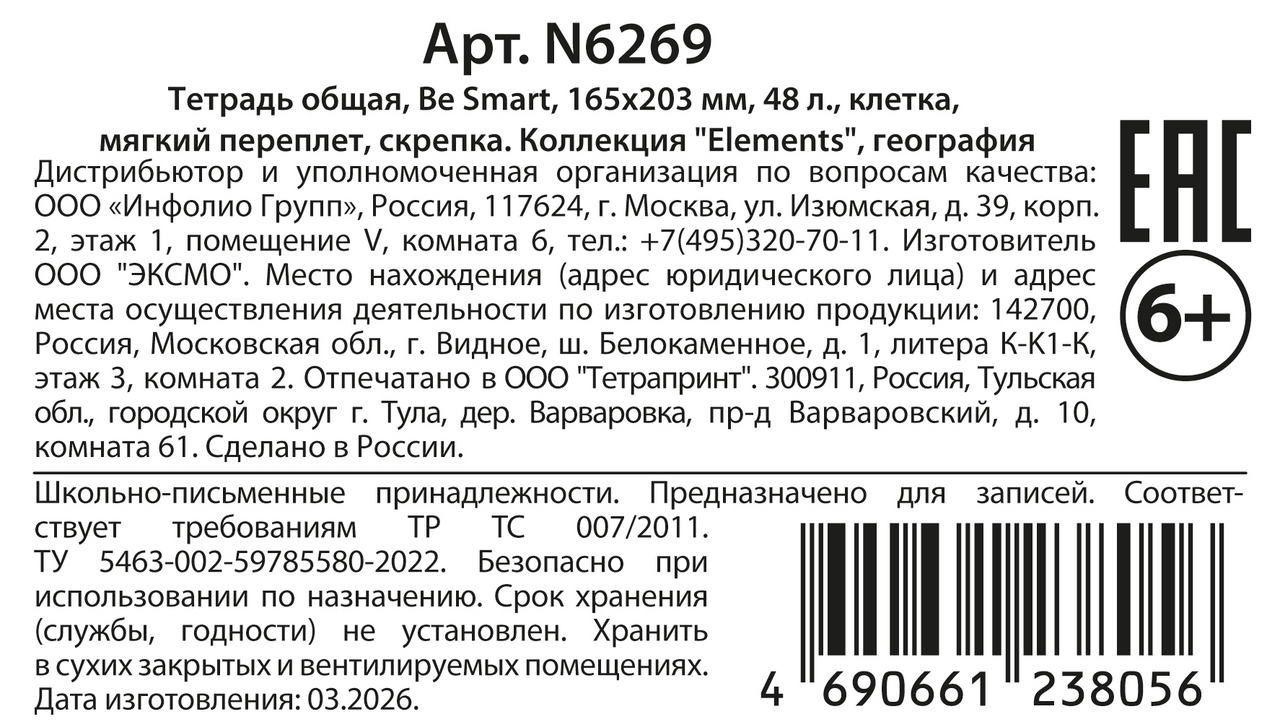 Тетрадь предметная Be Smart Elements География А5 ,48л