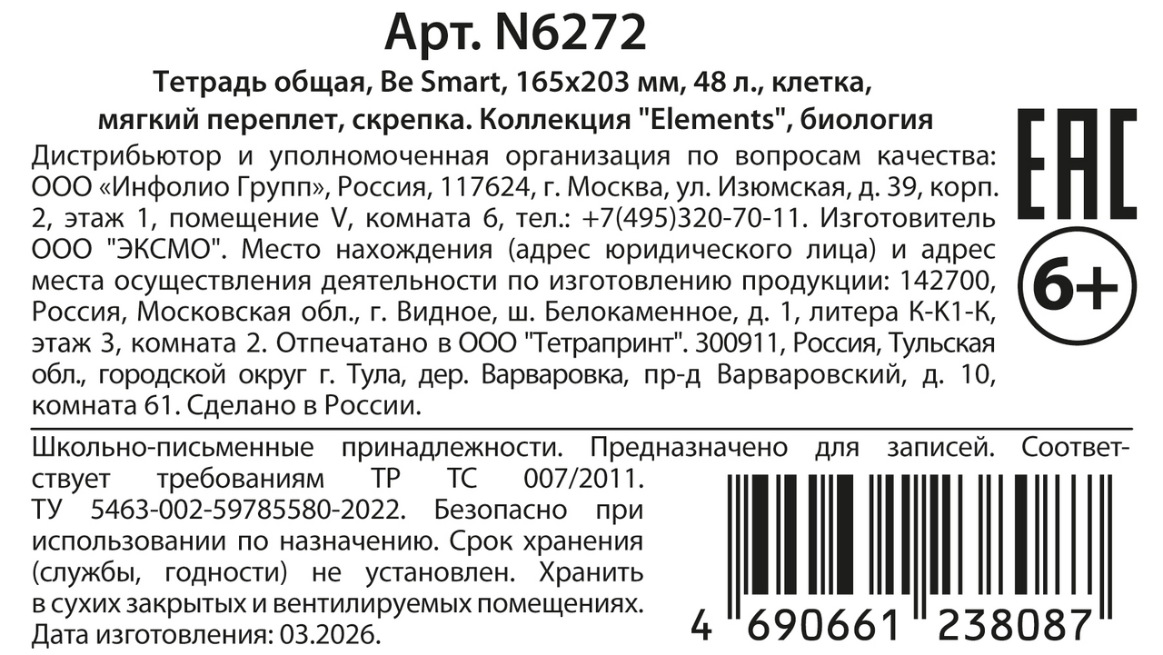 Тетрадь предметная Be Smart Elements Биология А5 ,48л