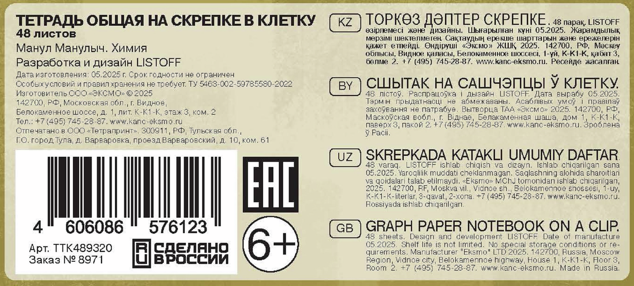 Тетрадь предметная Listoff Манул Манулыч Химия, 48л