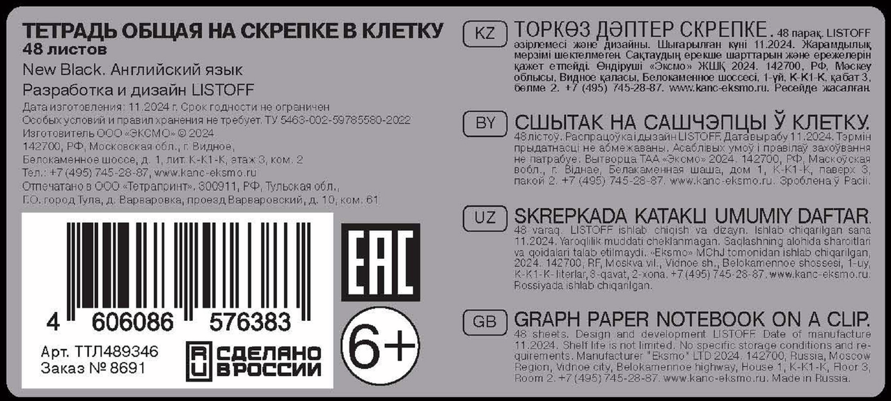 Тетрадь предметная Listoff New Black Английский язык, 48л