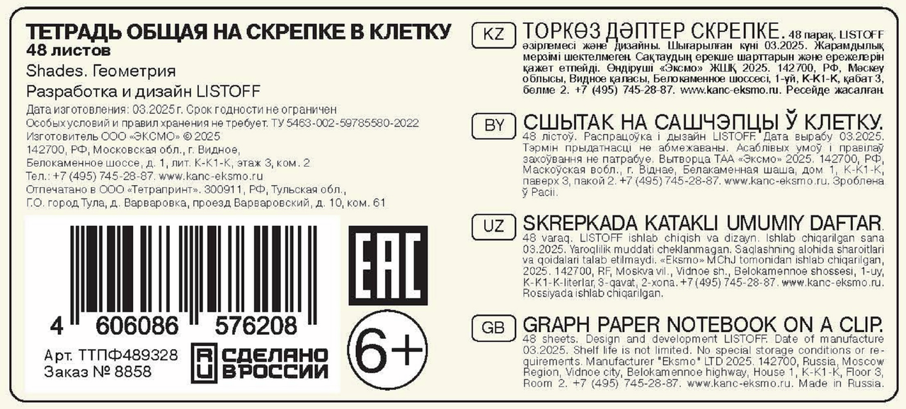 Тетрадь предметная Listoff Shades Геометрия, 48л