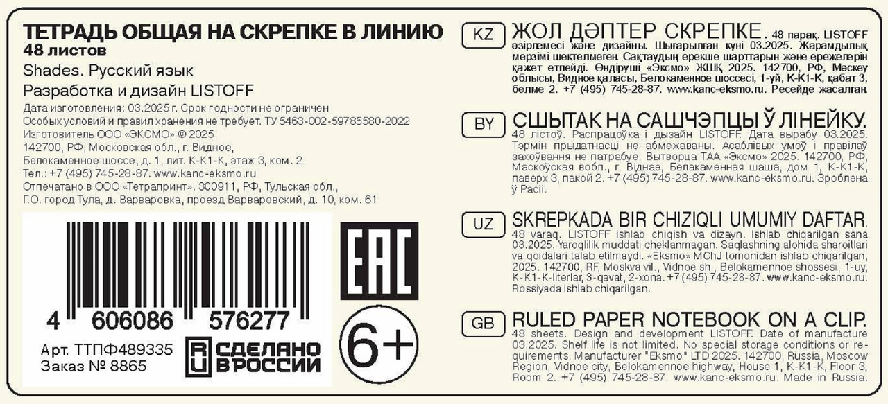 Тетрадь предметная Listoff Shades Русский язык, 48л