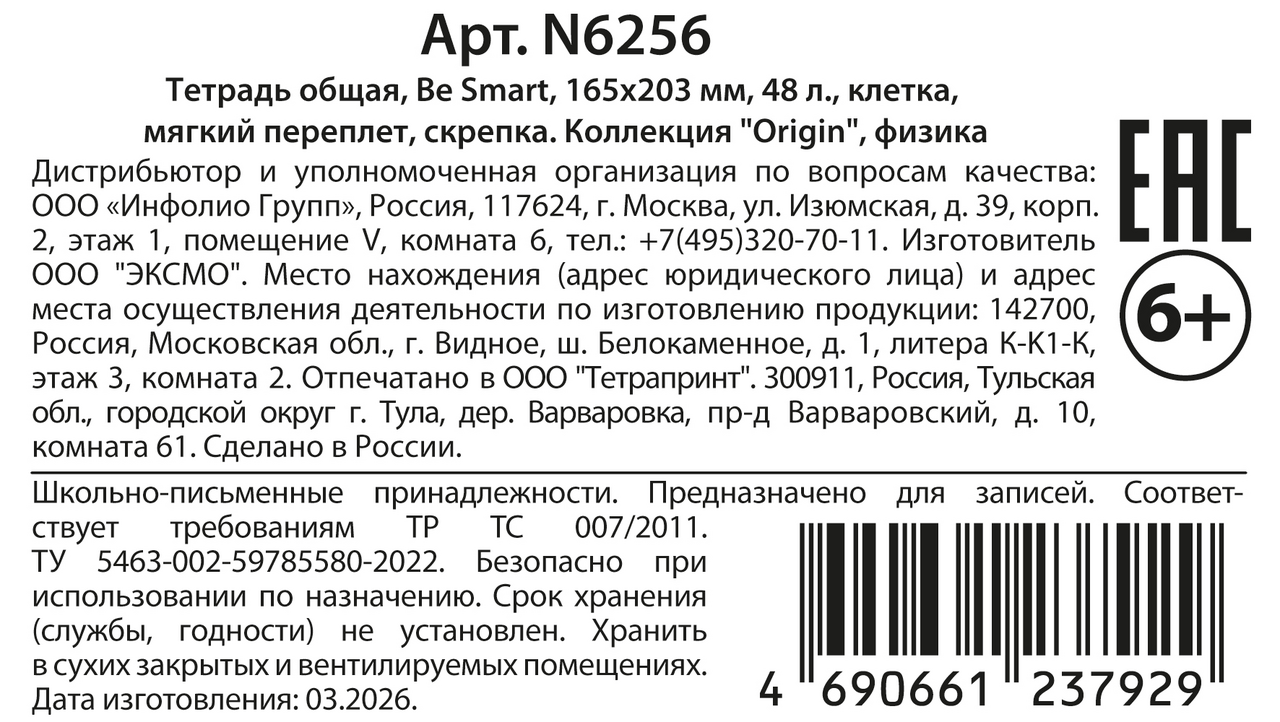 Обложка: картон, печать 4+4, микротекстурирование, ламинация. Скрепка. Внутренний блок: справочный материал, высококачественная бумага, клетка. Углы тетради скруглены. QR код на тетради дает доступ к справочному материалу онлайн.