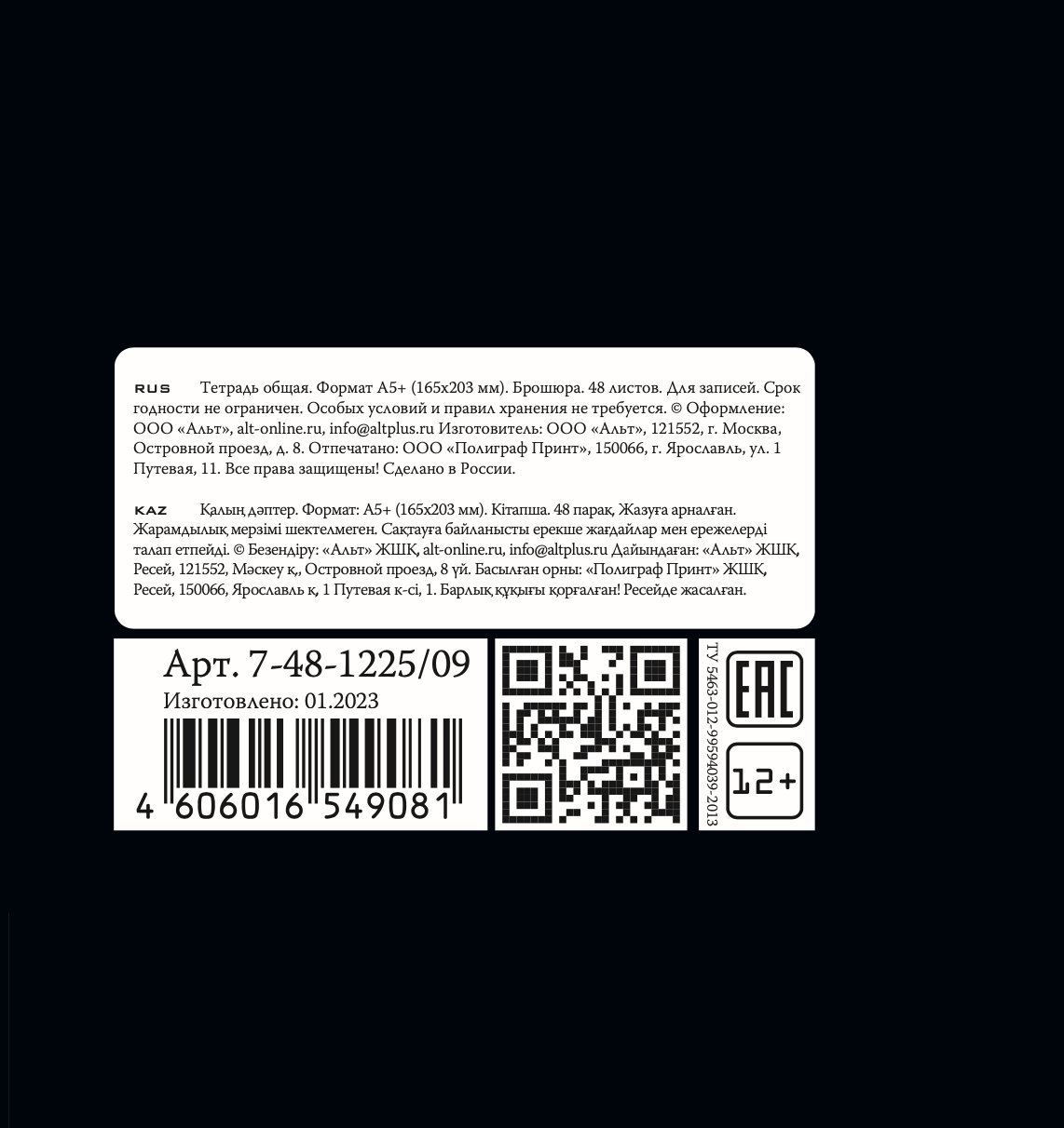 Тетрадь Альт Simple Black предметная алгебра, 48л - стильная и лаконичная обложка предметной тетради серии Simple Black разработана в лучших традициях компании Альт. Обложка тетради выполнена из плотного картона 190 г/кв.м и покрыта матовой пленкой SoftTouch, создающей приятные тактильные ощущения. Блок изготовлен из белой офсетной бумаги плотностью 65 г/кв.м. Линовка блока - клетка с полями - точно совпадает с лицевой и оборотной сторонами листа. 48 листов блока и обложка надежно скреплены двумя металлическими скобами. Углы тетради скруглены. Пять страниц справочного материала отличное подспорье в деле освоения новых знаний.