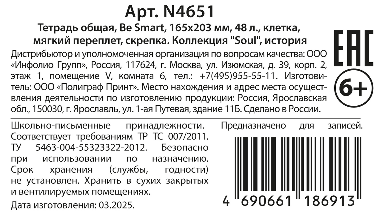 Тетрадь предметная Be Smart Soul История А5, 48л