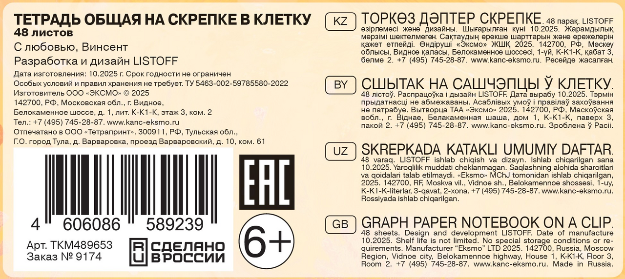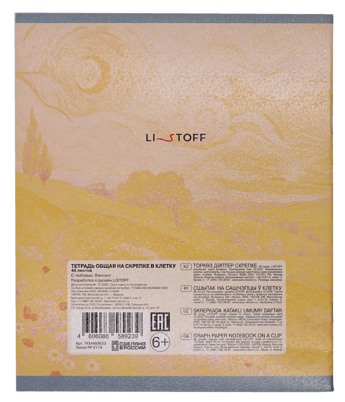 Тетрадь Listoff С любовью Винсент клетка А5, 48л