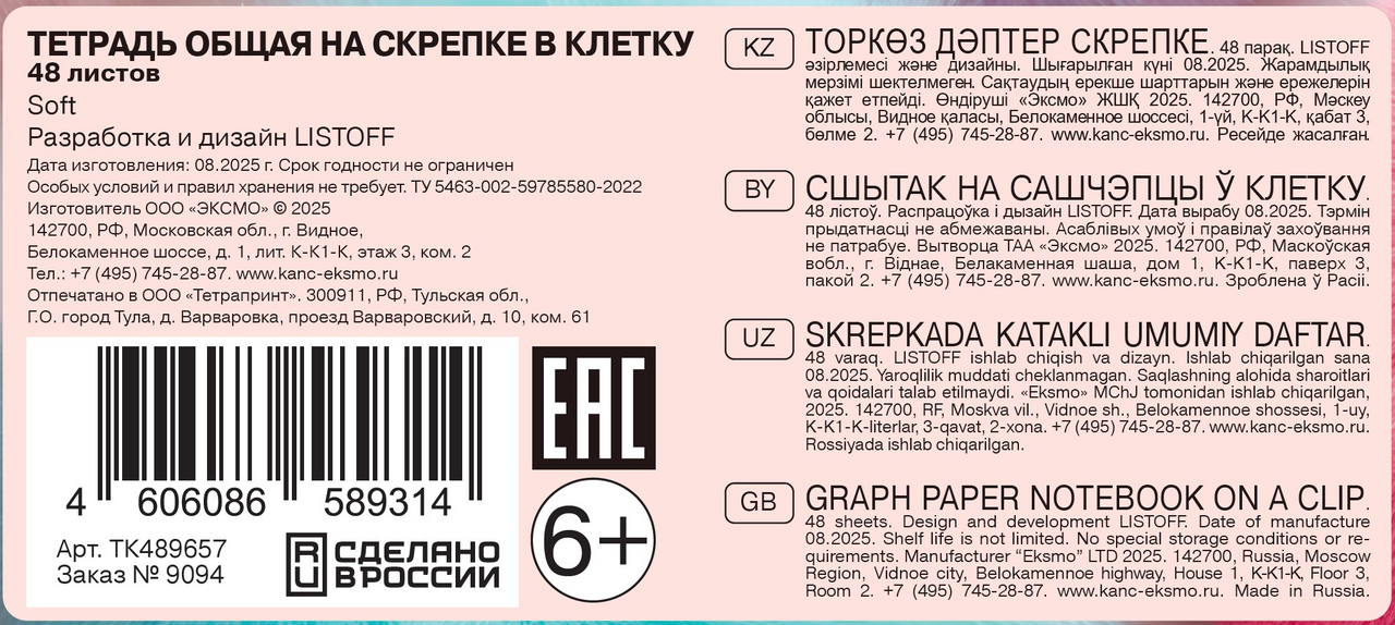 Тетрадь Listoff Soft клетка А5, 48л
