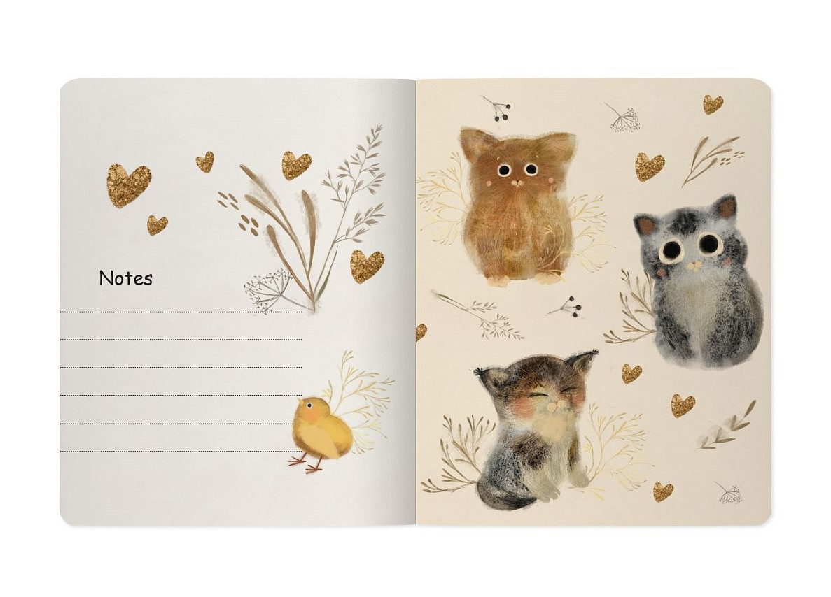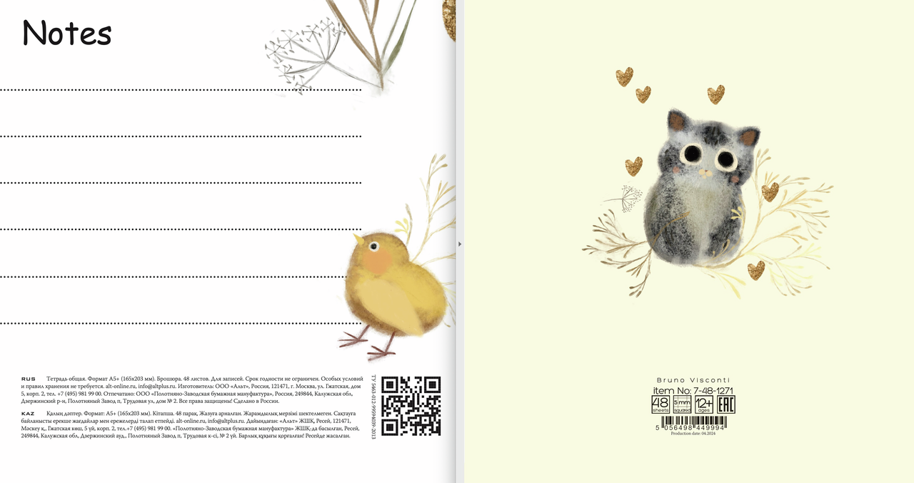 Отделка обложек матовой SoftTouch ламинацией придает тетрадям дополнительный шарм и вызывает приятные тактильные ощущения. Материалом обложки служит целлюлозный картон плотностью 190 г/кв.м, блока - офсетная бумага плотностью 60 г/кв.м. Линовка блока — клетка с полями — полностью совпадает на лицевой и оборотной сторонах листа тетради. Тетрадь имеет титульный лист, выполненный в одной стилистике с дизайном обложек, который имеет аккуратную линовку для подписи тетради. Металлические скобы, используемые при шитье тетрадей, надежно скрепляют блок и обложку. Скругленные внешние углы тетрадей позволяют избежать заломов.