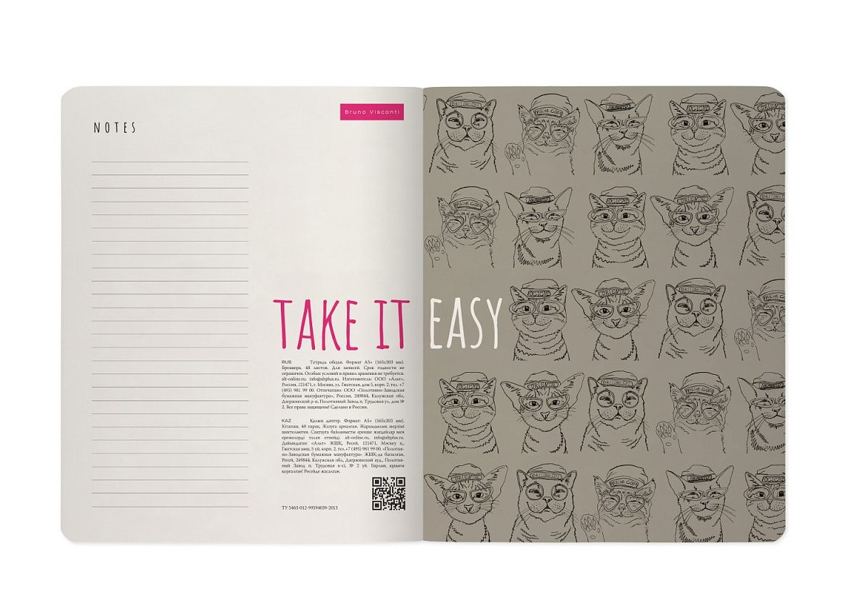 Тетрадь Альт Soft Touch Коты в клетку, 48 листов