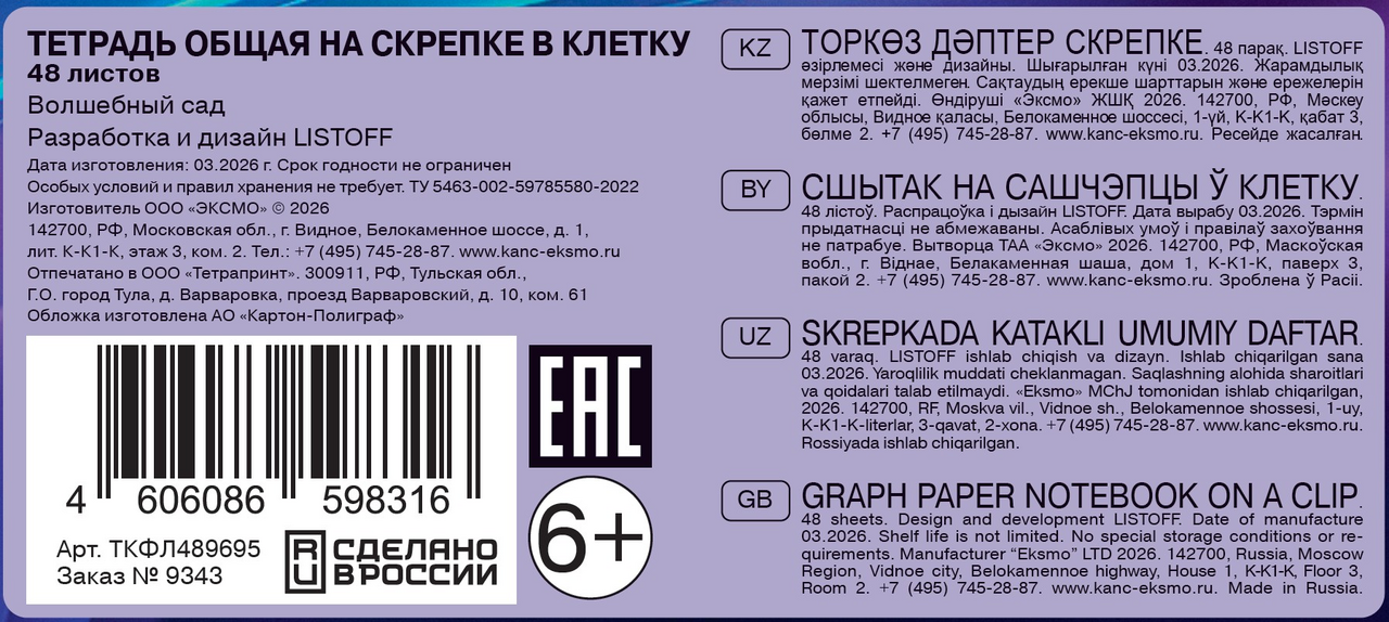 Тетрадь Listoff Волшебный сад клетка А5, 48л