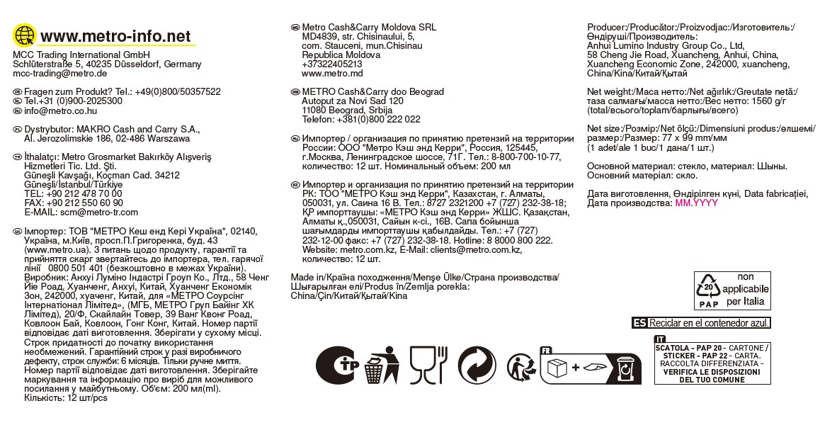 - Комплектация Стакан - 1 шт.