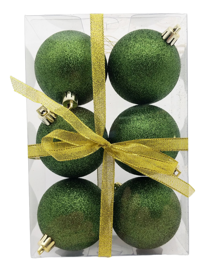 Tarrington House Набор шаров зеленые, 6см х 6шт – это прекрасное новогоднее украшение, которое красиво будет смотреться на вашей елке и в составе рождественской композиции с еловым венком и натуральными сосновыми шишками. Ими можно необычно украсить дверной и оконный проемы, камин, шкафы. Новогодние игрушки обладают классической круглой формой, приятной шершавой поверхностью и различной расцветкой: красной, коричневой, золотистой, серебристо-бирюзовой, поэтому будут уместно смотреться в любом интерьере. Приятный бонус – к шарам прилагаются тонкие золотистые петельки.