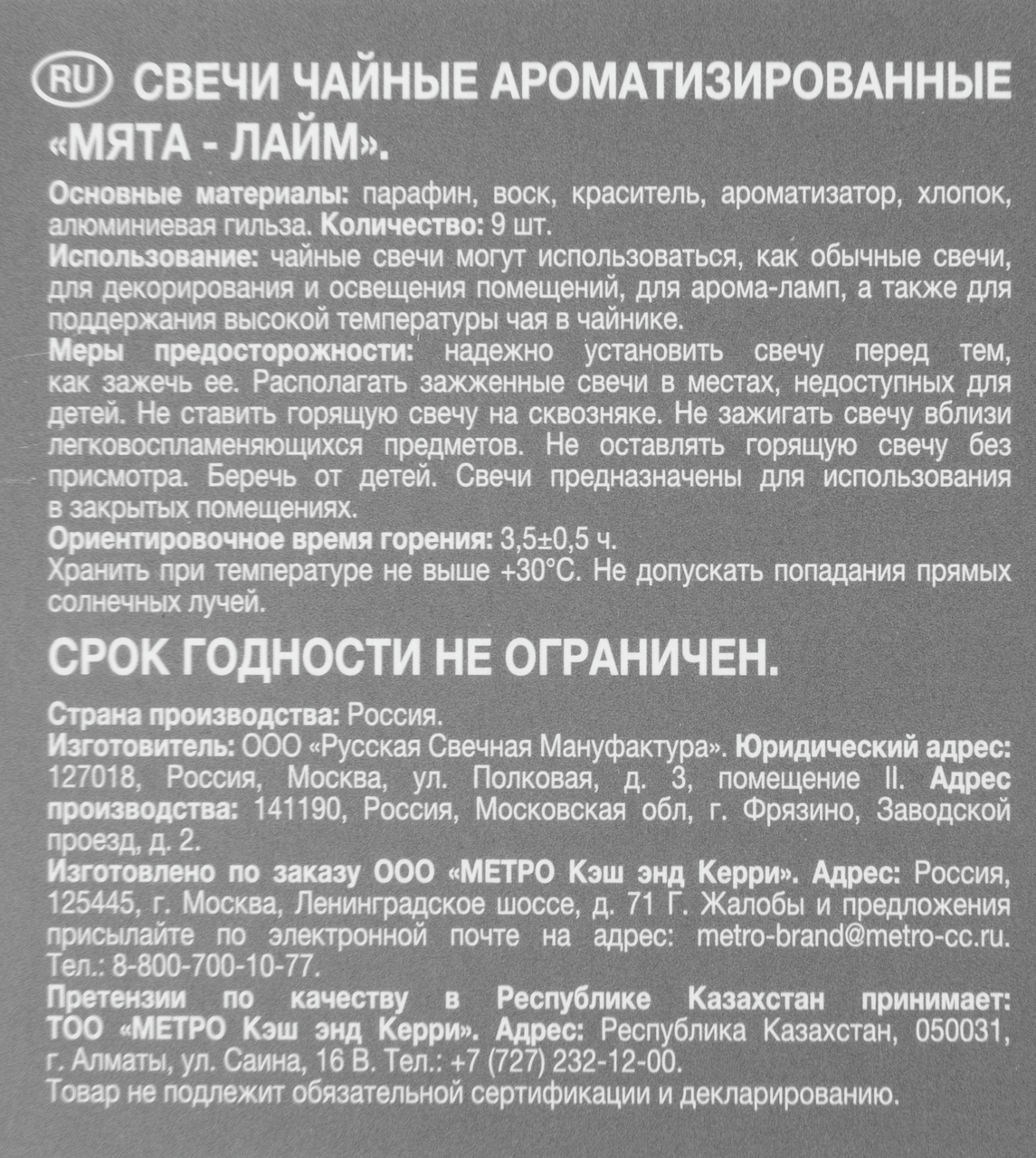 Tarrington House Свеча Чайная ароматическая Лайм & мята, 9шт предназначена для освещения и украшения помещений. Комплект аксессуаров для интерьера создает уютную романтическую атмосферу, декорирует праздничный стол, интерьер квартиры или загородного дома. Модель подходит, в том числе, для принятия ванны, йоги и медитации, погружения в полный релакс. Свеча испускает аромат лайма и мяты, который наполняет помещение нежностью и теплом. Он вызывает ощущение безопасности, комфорта, убирает излишнюю тревожность, чувство беспокойства и подавленности. Стильный элемент интерьера гармонично вписывается в различные стили: от классики, модерна до скандинавского или рустикального. Они также хорошо создают акценты и добавляют теплоту к минималистическому интерьеру. Элегантный дизайн и привлекательное исполнение создают изменчивую игру света и тени. Свечи горят аккуратно, не текут и не потрескивают, а время их горения составляет около 3-4 часов. Аксессуары можно расположить в гостиных и спальнях, мансарде или ванной комнате. Благодаря компактному размеру они легко помещаются на мебели, в серванте или на журнальном столике. Дополнительно их можно поставить в оригинальный стеклянный подсвечник, аромалампу, фигурный чайник или фондю, в зависимости от назначения, настроения и общего антуража в помещении. Свечи не рекомендуется ставить рядом с легковоспламеняющимися предметами. Хранить изделие необходимо вдали от прямых солнечных лучей и детей.