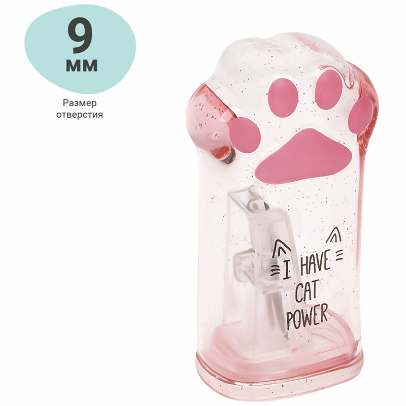 Точилка для карандашей Say Meow в форме милой лапки станет отличным помощником в учебе и творчестве Изделие имеет контейнер для сбора стружки и отверстие для заточки карандашей диаметром 8 мм. Высококачественное лезвие обеспечит отличную заточку карандаша, а милый дизайн усилит радость использования и подарит отличное настроение. Количество отверстий для заточки: 1; Контейнер для стружки: есть; Диаметр отве��стия: 8 мм.
