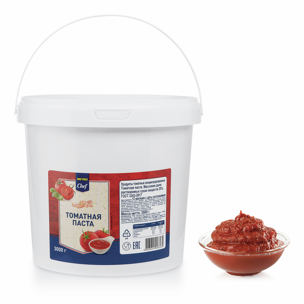 Томатная паста Metro Chef высшего сорта, 3 кг создана на основе томатной пасты. Ее можно использовать для приготовления горячих бутербродов, сэндвичей, хот-догов, подавать к мясу или птице, а также добавлять в борщ, харчо и другие блюда. Томантаная паста, разведенная с водой и солью, станет хорошей альтернативой томатному соку. Кроме того, томатная паста – прекрасный маринад. Упаковкой для продукта служит пластиковое ведро, которое обеспечивает надежное сохранение вкусовых качеств продукта в пределах установленного срока годности.