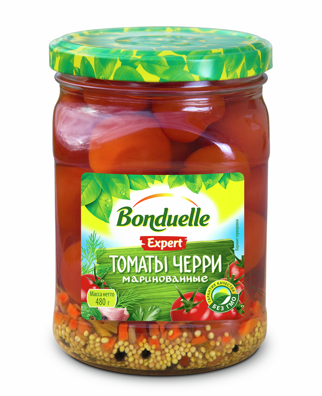 Насладитесь уникальной рецептурой томатов черри от Бондюэль: листики вишни, искусно подобранные специи и умеренное количество уксуса придают томатам традиционный аромат домашних заготовок. Томаты собираются на этапе молочной зрелости и попадают на завод прямо с грядки, затем бережно вручную закладываются в банки. Именно поэтому они обладают идеальным внешним видом и способны украсить любое застолье.