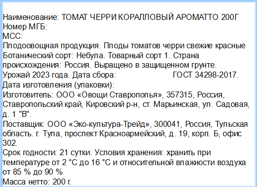 Томаты ЭКО-культура коралловые ароматто, 200г