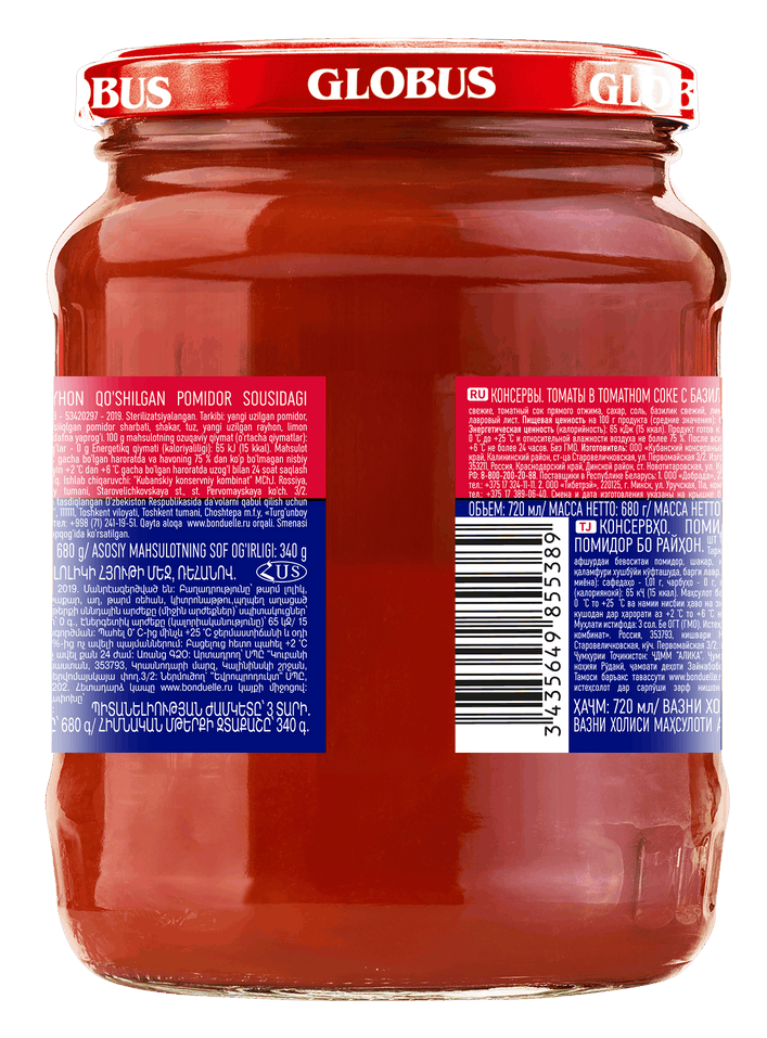 Томаты Globus в томатном соке с базиликом, 720мл
