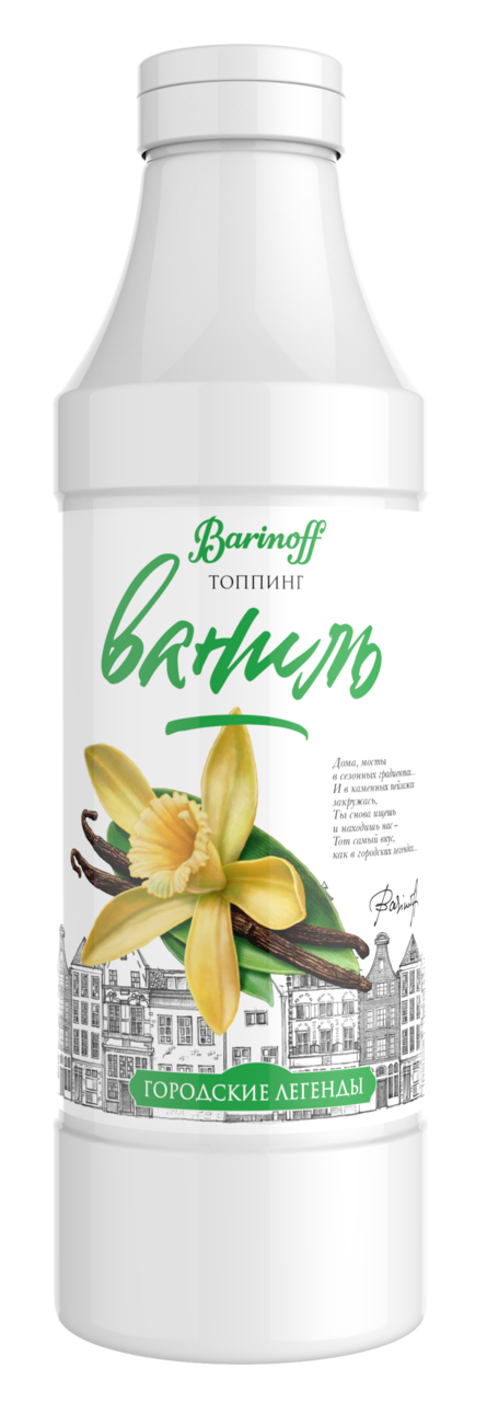Топпинг Баринофф Ваниль, 1кг украсит любой десерт и придаст готовому блюду сладкий ванильный вкус и аромат. Его также можно добавлять в мороженое, поливать им сверху торты, пирожные. Это прекрасная добавка для молочных коктейлей. Она сделает напитки необыкновенными и яркими. Топпинг можно добавить малышам в кашу, и дети точно оценят по достоинству ее. Продукт заключен в красочную яркую бутылку. Герметичная многоразовая упаковка позволяет сохранить вкус и аромат продукции длительное время.
