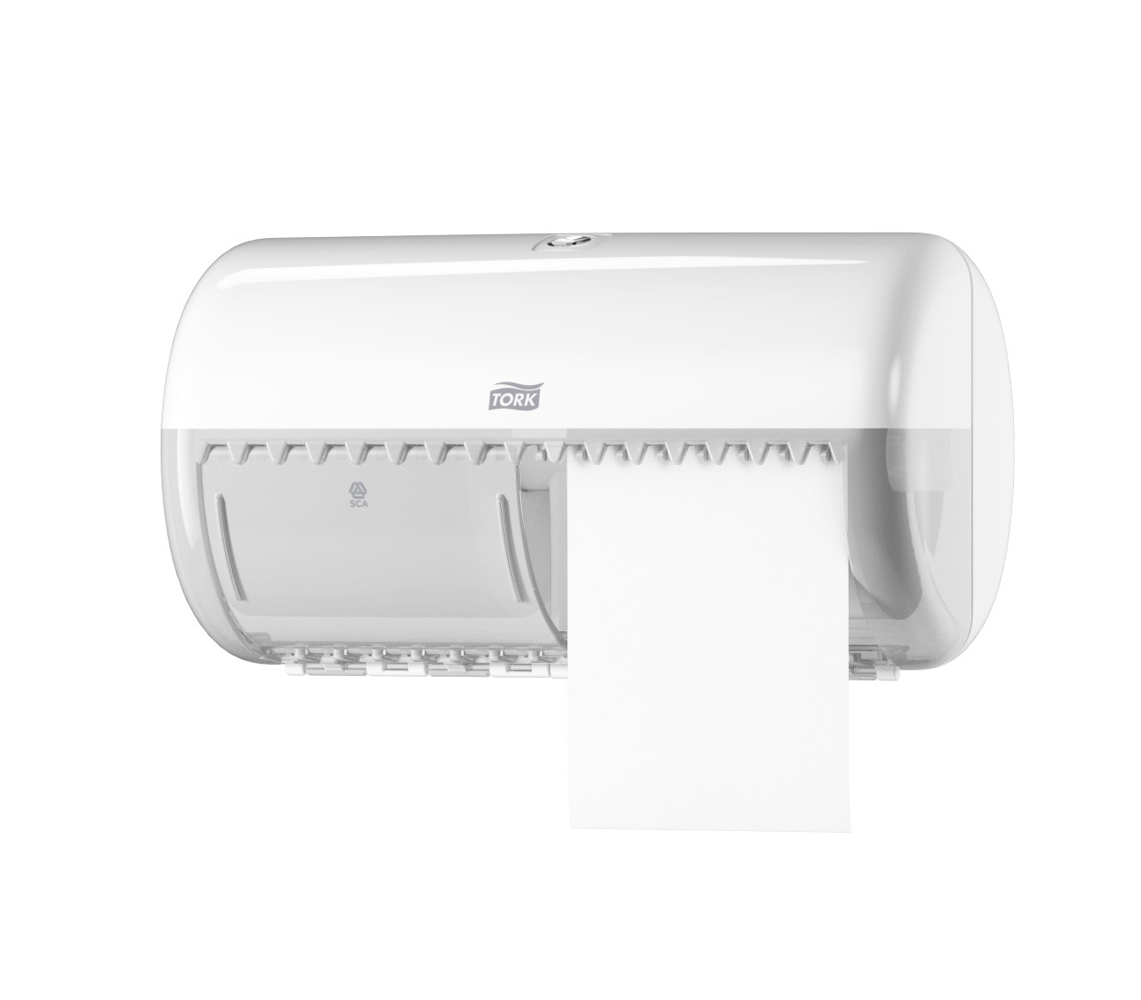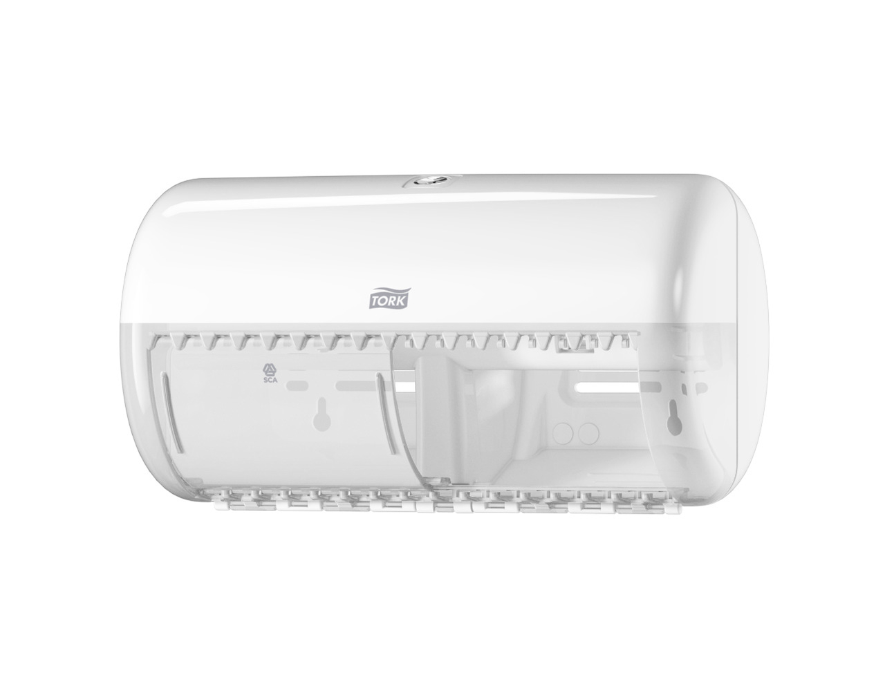 Tork диспенсер для туалетной бумаги в стандартных рулонах серии Elevation подходит для туалетных комнат с низкой проходимостью и снижает необходимость в техническом обслуживании, вмещая два рулона обычной туалетной бумаги. Диспенсеры Tork Elevation — это уникальное сочетание дизайна и функциональности, для лучших впечатлений ваших гостей.