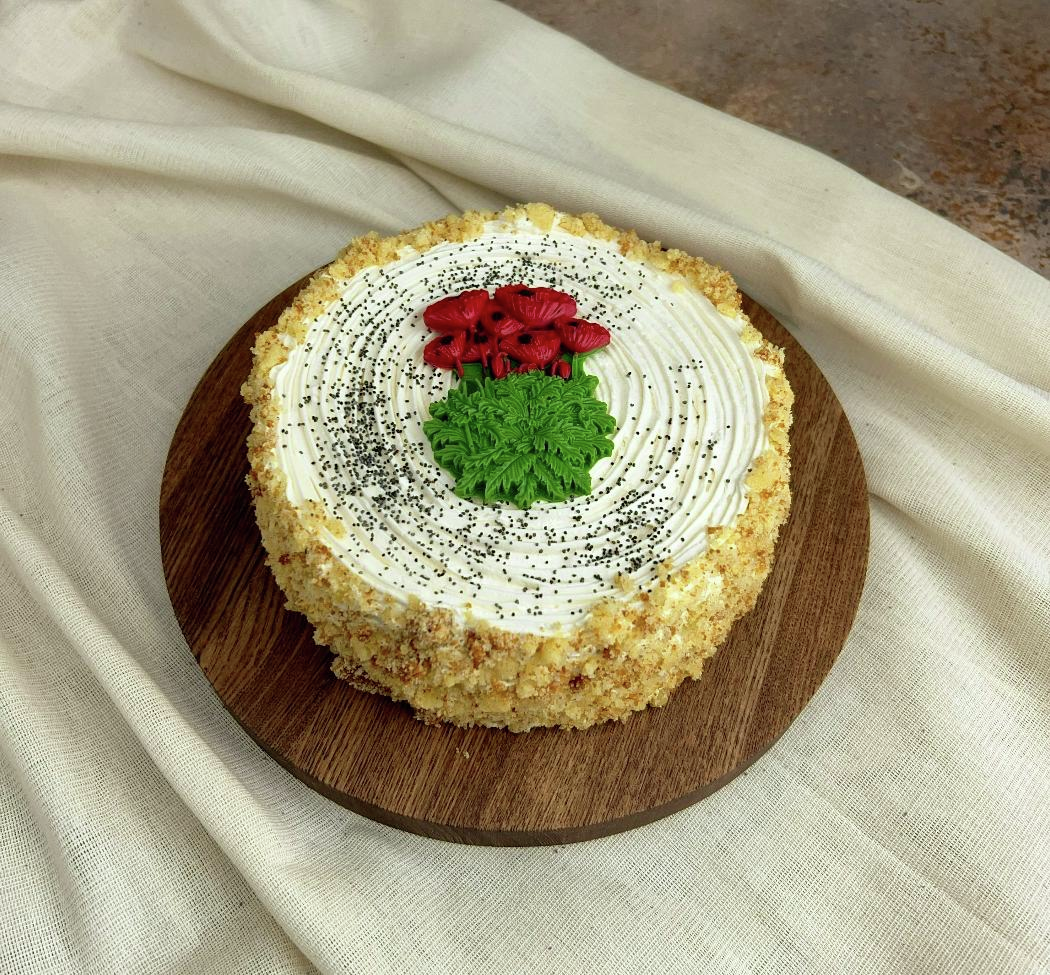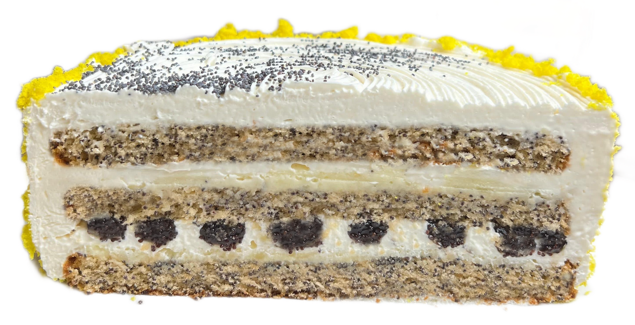 Бисквит с маком, заварной крем с лимонно-сливочной прослойкой, маковая начинка. Можно использовать в качестве десерта к чаю или кофе.