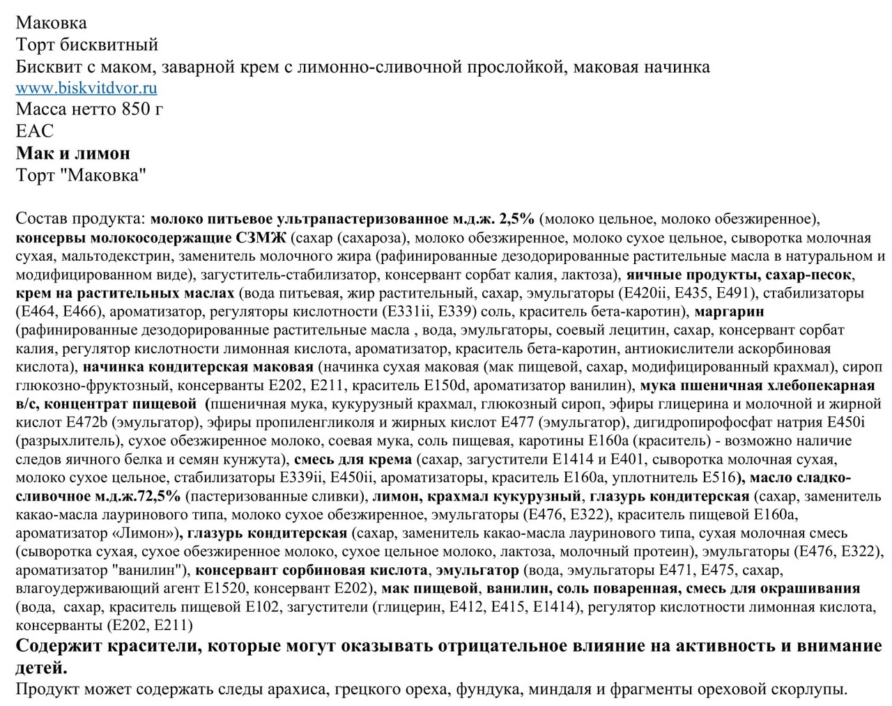 Молоко питьевое ультрапастеризованное молоко цельное, молоко обезжиренное, консервы молокосодержащие СЗМЖ сахар сахароза, молоко обезжиренное, молоко сухое цельное, сыворотка молочная сухая, мальтодекстрин, заменитель молочного жира рафинированные дезодорированные растительные масла в натуральном и модифицированном виде, загуститель-стабилизатор, консервант сорбат калия, лактоза, яичные продукты, сахар-песок, крем на растительных маслах вода питьевая, жир растительный, сахар, эмульгаторы Е420ii, Е435, Е491, стабилизаторы Е464, Е466, ароматизатор, регуляторы кислотности Е331ii, Е339 соль, краситель бета-каротин, маргарин рафинированные дезодорированные растительные масла, вода, эмульгаторы, соевый лецитин, сахар, консервант сорбат калия, регулятор кислотности лимонная кислота, ароматизатор, краситель бета-каротин, антиокислители аскорбиновая кислота, начинка кондитерская маковая начинка сухая маковая мак пищевой, сахар, модифицированный крахмал, сироп глюкозно-фруктозный, консерванты Е202, Е211, краситель Е150d, ароматизатор ванилин, мука пшеничная хлебопекарная, концентрат пищевой пшеничная мука, кукурузный крахмал, глюкозный сироп, эфиры глицерина и молочной и жирной кислот Е472b эмульгатор, эфиры пропиленгликоля и жирных кислот Е477 эмульгатор, дигидропирофосфат натрия Е450i разрыхлитель, сухое обезжиренное молоко, соевая мука.