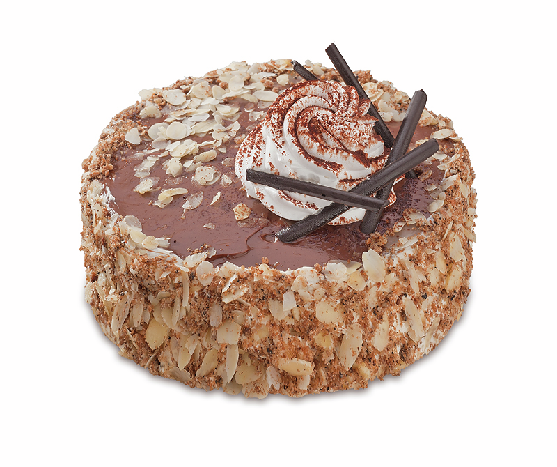 Шоколадно-ореховые коржи прослоены сливочно- заварным кремом. Торт покрыт шоколадной помадкой, украшен миндалём, взбитыми сливками и шоколадом. Создан из оригинальных шоколадно-ореховых коржей, прослоенных сливочно-заварным кремом с добавлением вишневой наливки.