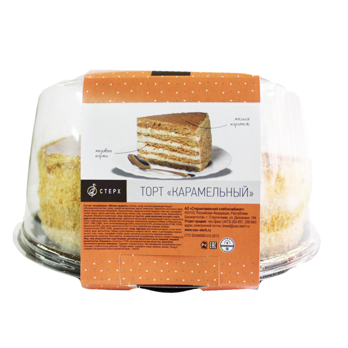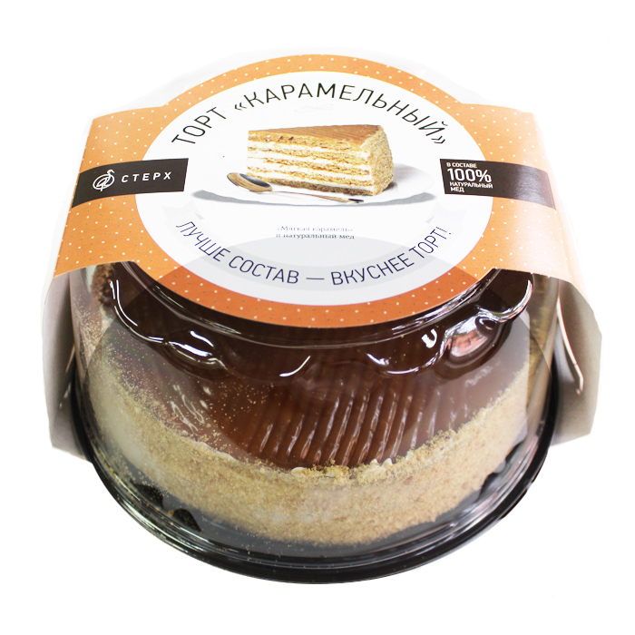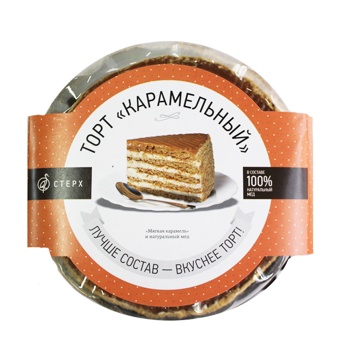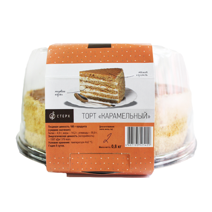 В основе – оригинальный воздушный бисквит, пропитанный сиропом с добавлением коньяка. Особую легкость и нежность десерту придают два муссовых слоя: ванильный и карамельный. В составе также присутствуют небольшие кусочки ананаса, добавляющие к изысканному вкусу тортика приятные тропические оттенки. Сверху изделие украшено гляссажем, дутым рисом и шоколадным декором. Произведено вручную из свежих, 100% натуральных ингредиентов без добавления вредных искусственных добавок