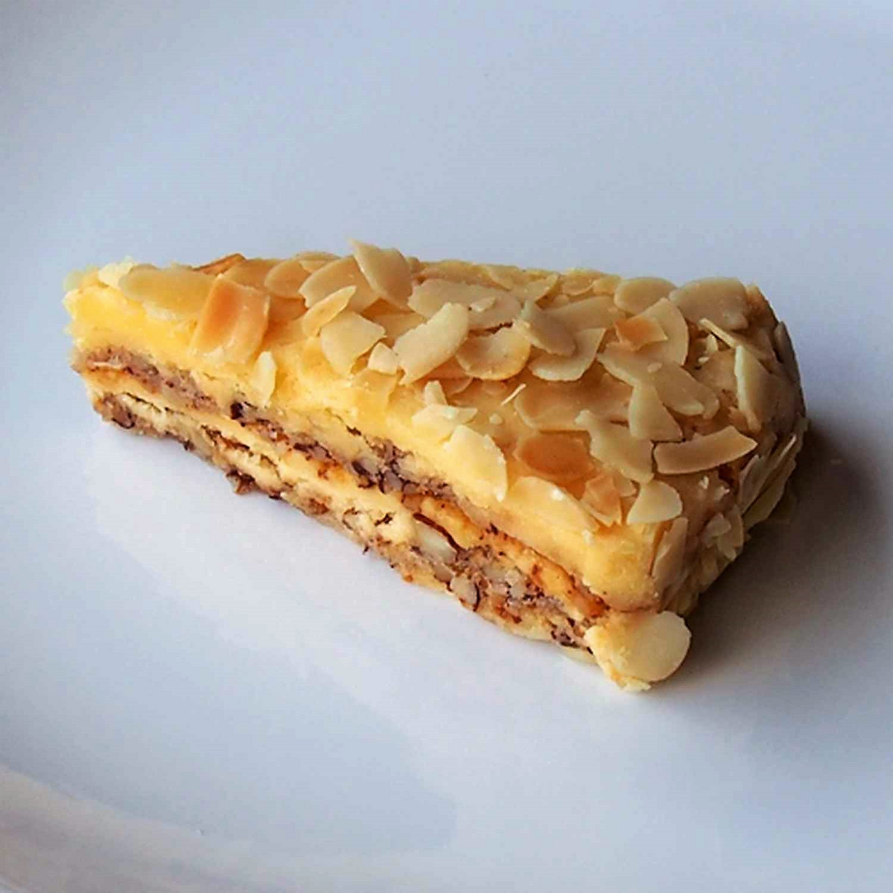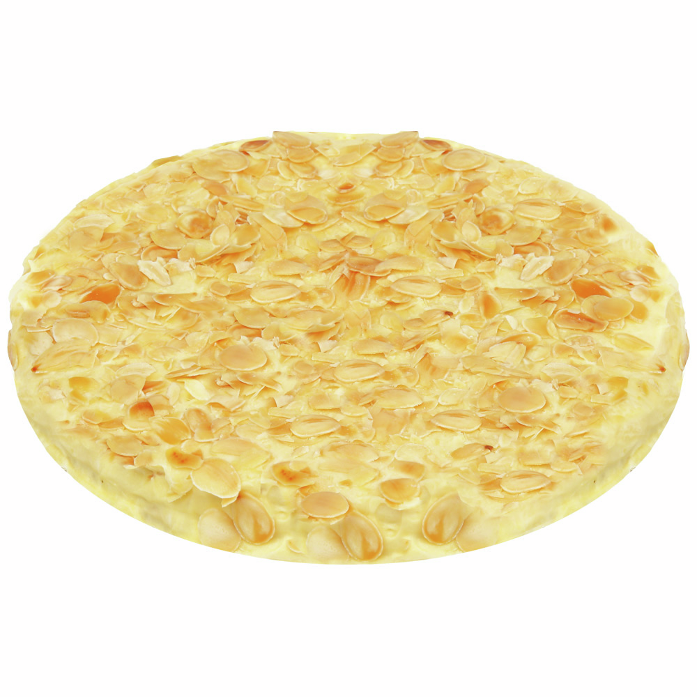 Торт, приготовленный по шведскому рецепту 19 века. Бисквит из миндальной муки, прослоенный нежным сливочным кремом и украшенный кусочками миндаля. Легкое лакомство отличается приятным, деликатным вкусом. Торт рекомендуется нарезать на кусочки до размораживания. При этом лучше пользоваться ножом, смоченным в горячей воде.