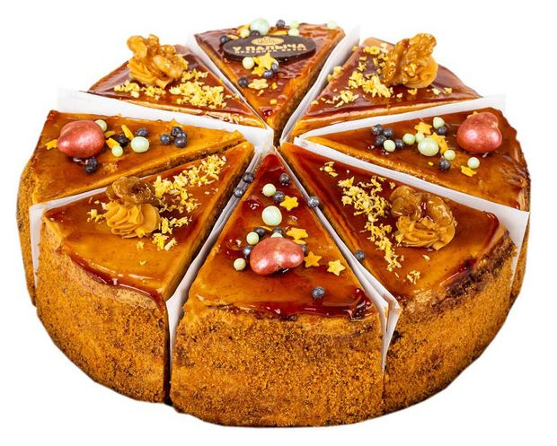 Сочетание ароматного медового бисквита, нежного сливочно-заварного крема на основе вареного сгущенного молока и прослойки из грецкого ореха в молочной карамели.