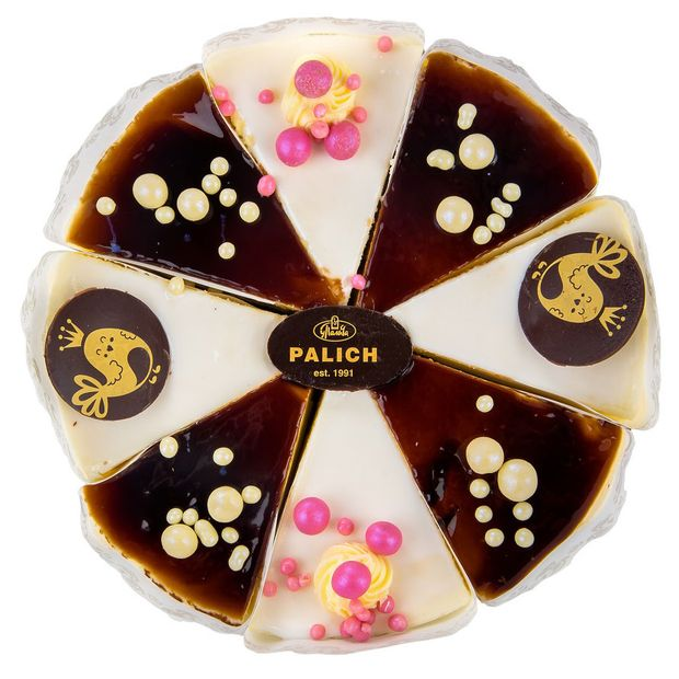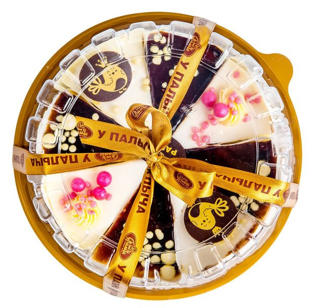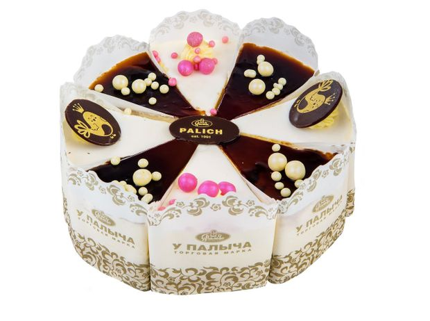 Воздушное сливочное суфле на агаре, два нежных песочно-сдобных коржа на сметане. Торт порционный, украшен сливочно-шоколадным кремом, горьким и белым шоколадном.
