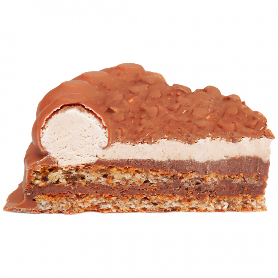 Бисквитные коржи, прослоенные медово-миндальной нугой, покрыты шоколадным мороженным. Торт покрыт глазурью; украшен лепестками миндаля и шоколадом Тоблероне в форме пирамидок. Отличается притягательным ароматом и деликатным вкусом с орехово-карамельными нотками. Рекомендуется подавать в качестве десерта (например, к кофе). Не содержит глютена, консервантов и искусственных красителей.